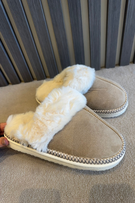 Beige Lavish Mules With Faux Fur Lining
