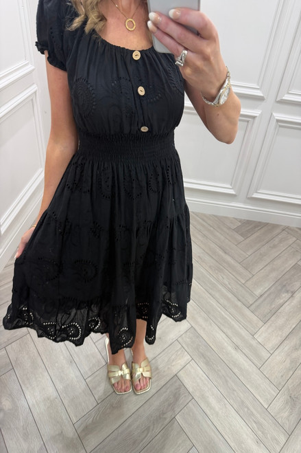 Black Muse Broderie Shirred Midi Dress