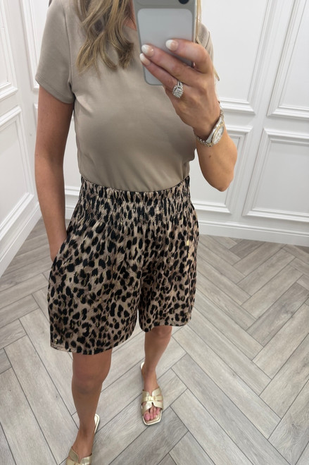 Brown Monaco Leopard Elasticated Shorts