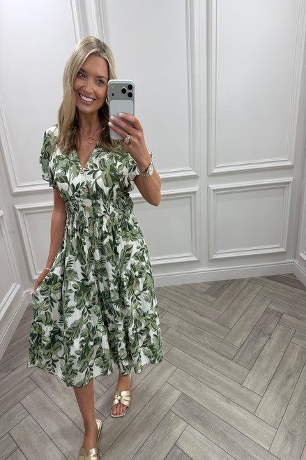 Hannah Khaki Shirred Midi Dress