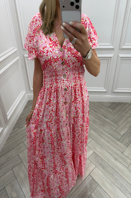 Magenta & Pink Ayla Shirred Maxi Dress