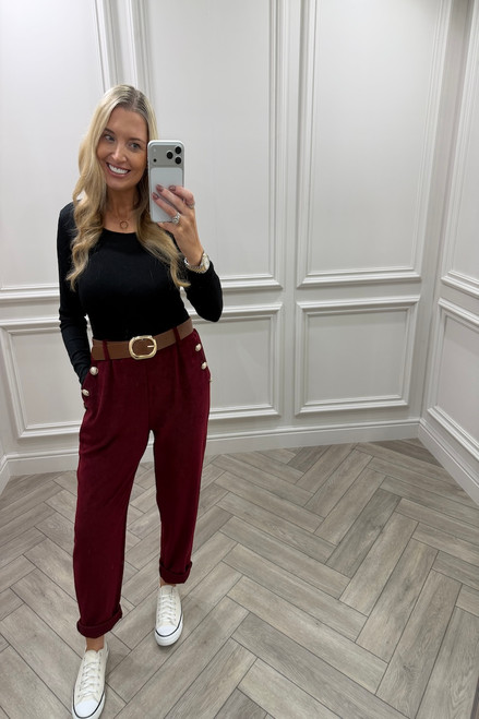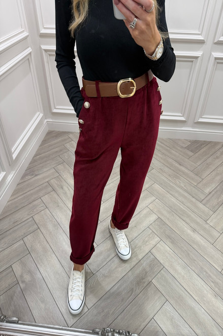 Paris Wine Button Detail Trousers