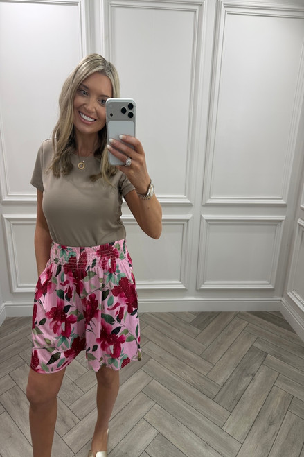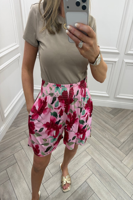 Pink Petal Floral Elasticated Shorts