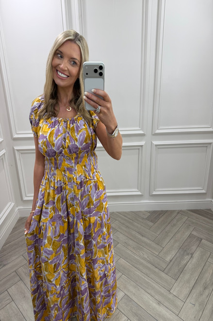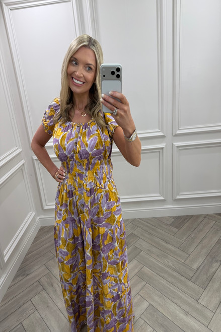 Yellow & purple Celia Shirred Maxi Dress